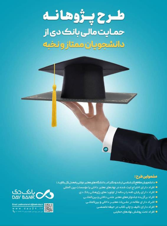بانک دی با طرح پژوهانه از دانشجویان ارشد و دکتری نخبه دانشگاههای دولتی حمایت مالی میکند.